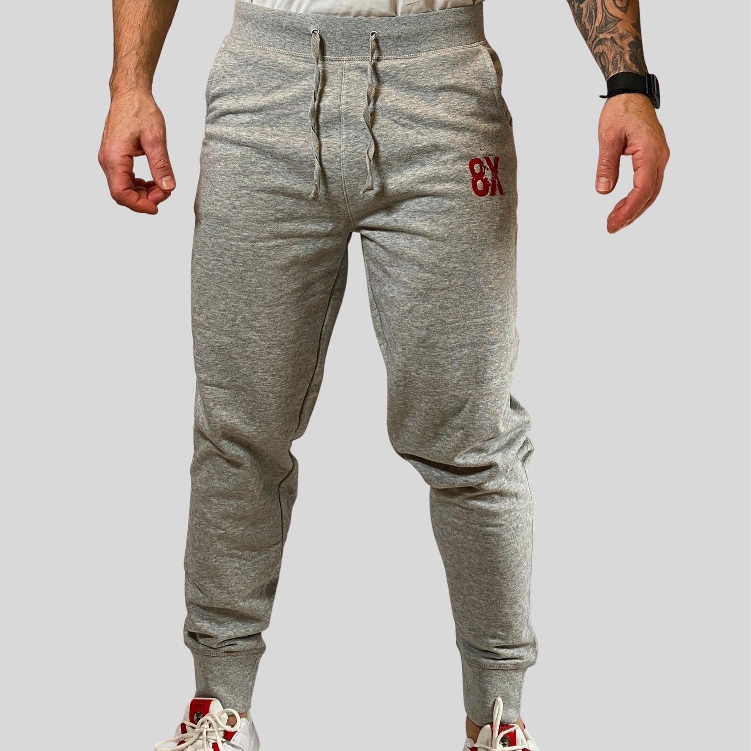 EVERYDAY | Unisex Embroidered 8X Slim Cuffed Joggers | Heather Grey